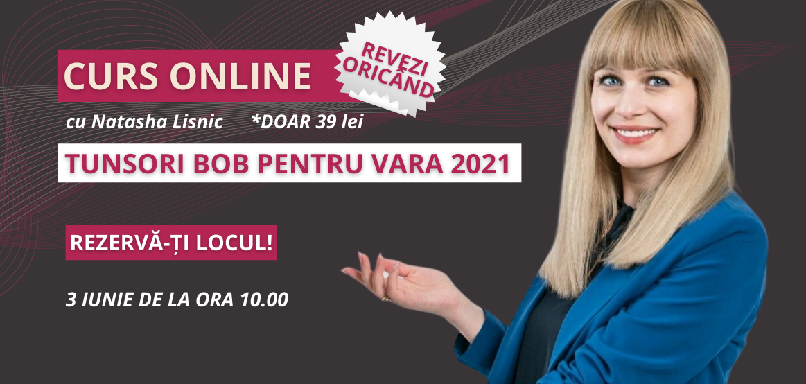 Știai că există zeci de variante ale acestei tunsori ? Vino la cursul nostru online și află de la Natasha Lisnic secretele nespuse ale hair styliștilor de succes.