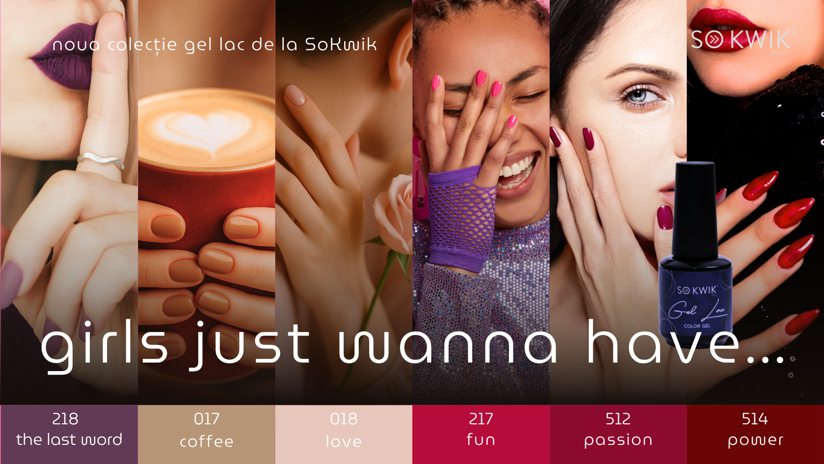 Colecția SoKwik Gel Lac – Girls just wanna have… surprinde exact esența acestui limbaj al culorilor: de la nuanțe calme de coffee și love, la tonuri îndrăznețe precum fun, passion și power.