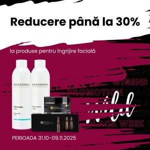 În Black Week Wigmond, ai acces la măști, seruri și creme profesionale de la branduri apreciate: Helia-D, Anaconda Professional, Tassel și altele.