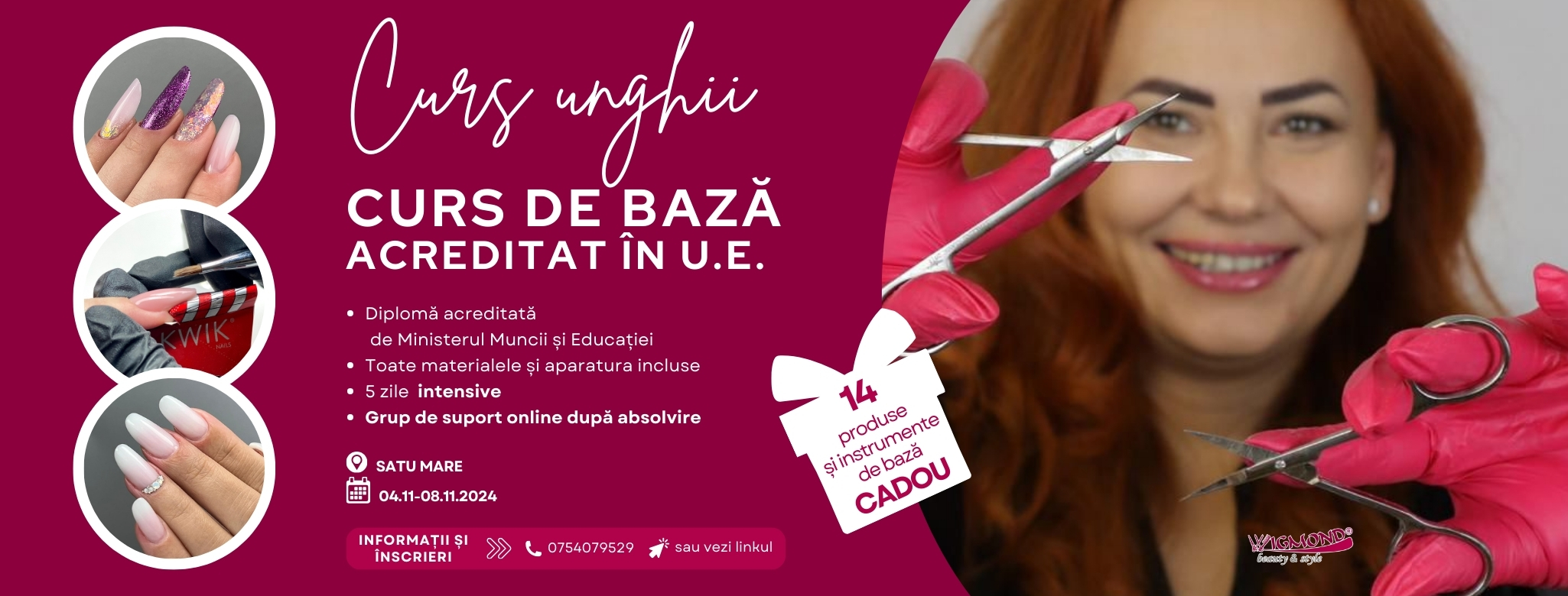 Wigmond Academy – Formare profesionala la un alt nivel Cu o experiență de peste 20 de ani în domeniul manichiurii, îți punem la dispoziție cunoștințele noastre acumulate, completate de produse profesionale de top. Wigmond este alături de tine în călătoria spre excelență profesională, oferindu-ți produse de cea mai înaltă calitate și servicii premium. Trainerii noștri, cu specializări internaționale, te vor ghida pas cu pas, aducându-ți cele mai noi informații și tehnici pentru a-ți perfecționa abilitățile. Ce vei învăța? 𝐙𝐢𝐮𝐚 𝟏 Manichiura clasică și cu ojă semipermanentă 🟣Cunoașterea echipamentelor și a materialelor de......